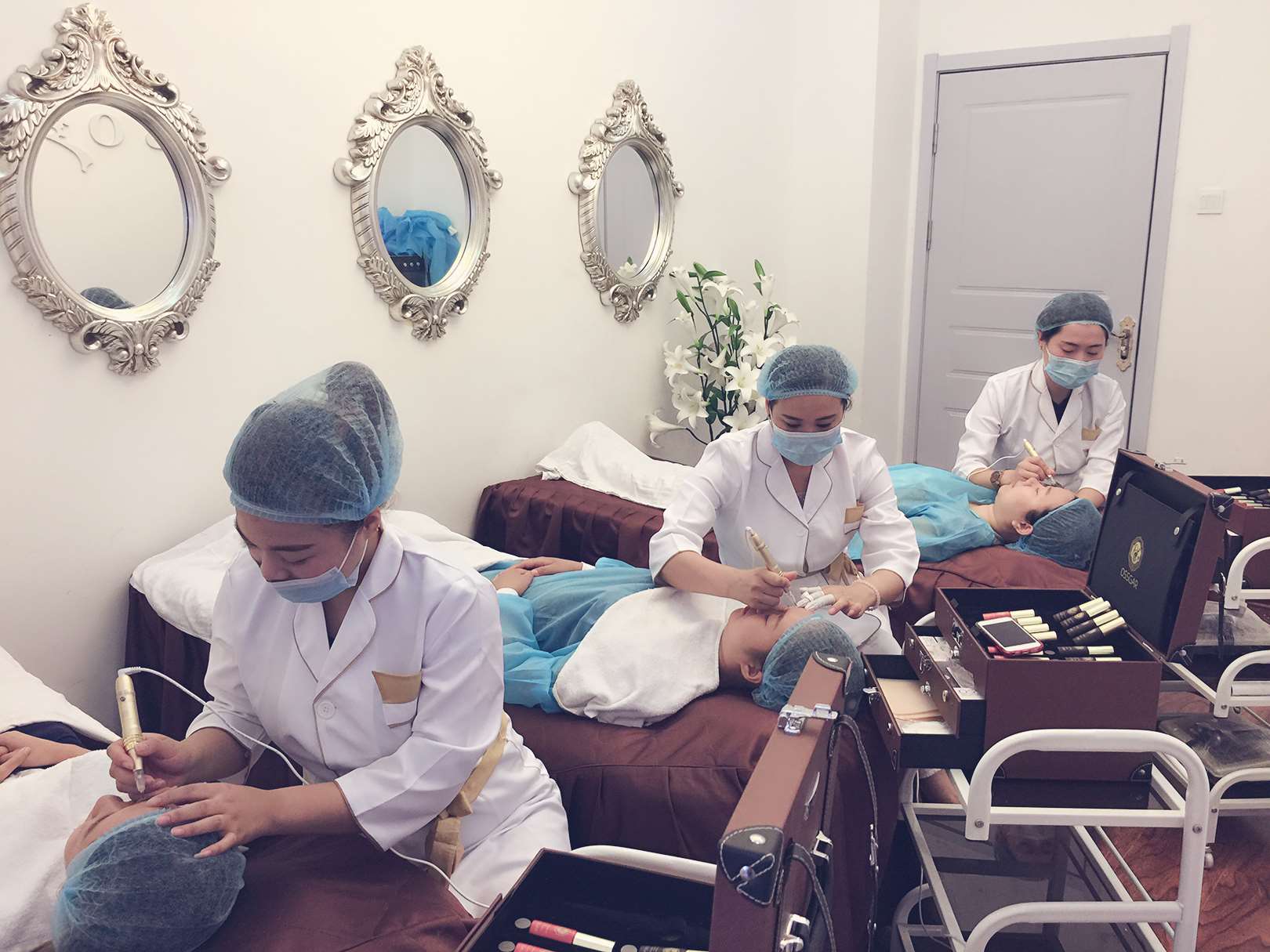 包括柔仿绣绘艺术,纹刺眼线,立体绣眉,雕眉,漂眉、羽毛种眉等,绣眼睫线,仿真唇部润色,仿真唇线设计纹绣、漂印全唇、水晶润唇,遮盖修改失败眉形,失败眼线、唇线,失败纹绣颜色改变等,转色技巧,洗眉方法,纹身,半永久性纹身、美瞳线,韩式半永久化妆术,粉黛眉,驻颜术、孕唇术、孕睫术等最新技术。为了保证您学好技术,不浪费时间,白花钱,我们的老师都要手把手教学的,单个把关的,着重培养学生的动手操作能力的,尽可能在1个半月完成你的学业的。毕业学校颁发证书安排就业